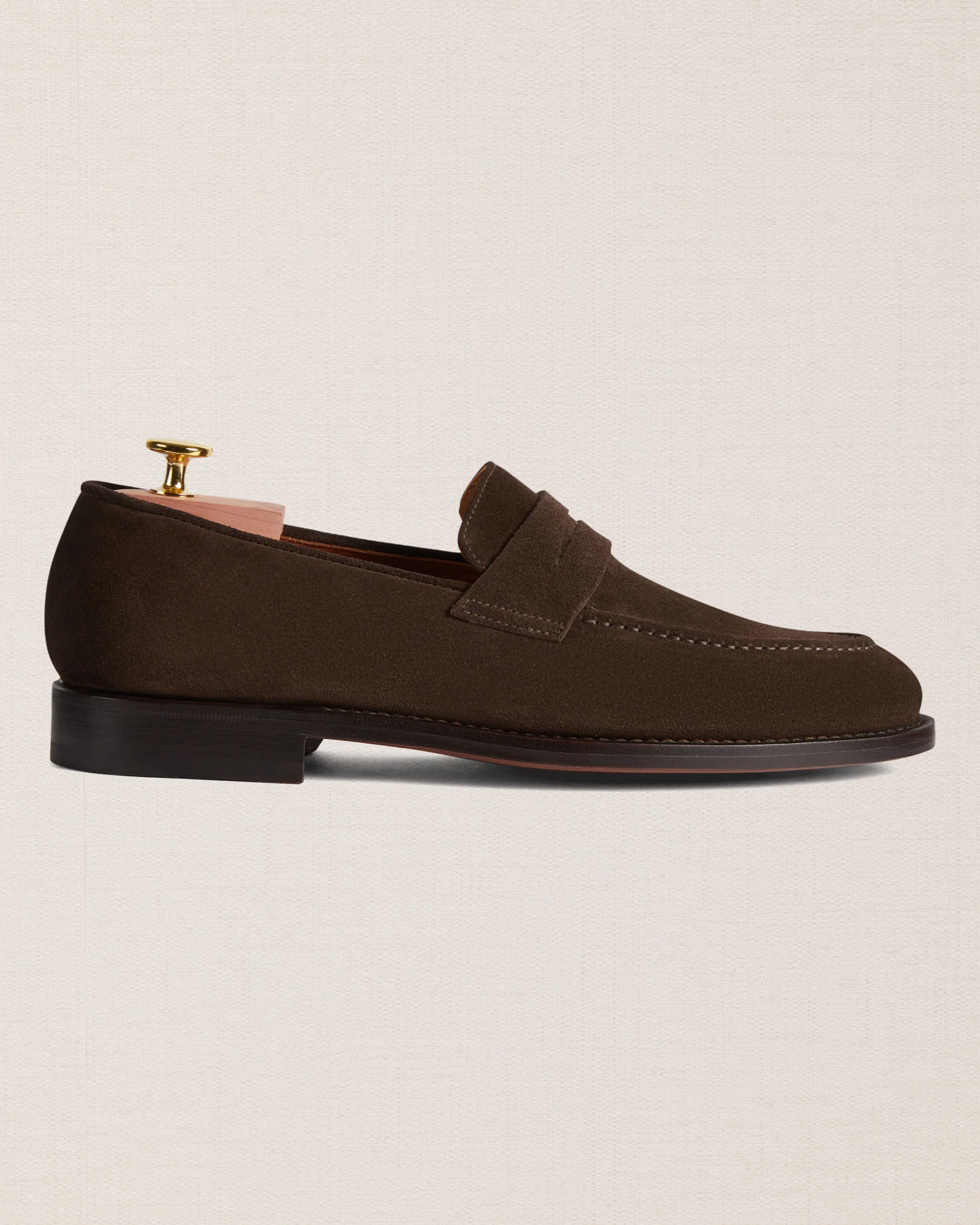 It's a Penny Loafer that acts like a Tassel Loafer. It takes the best from each style: a very tapered shape and the blake-rapid construction, the most refined on the market. With its water-resistant suede leather and leather sole, it’s a dark brown shoe for the versatile man who’s looking for flexibility and charm at the same time.